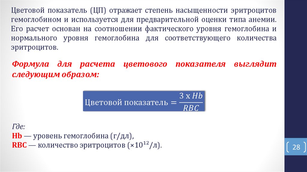 Его расчет основан на соотношении фактического уровня гемоглобина и