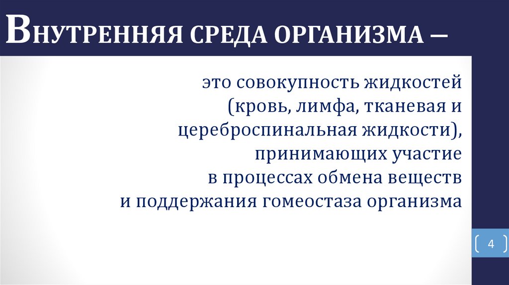 ВНУТРЕННЯЯ СРЕДА ОРГАНИЗМА ―это совокупность жидкостей