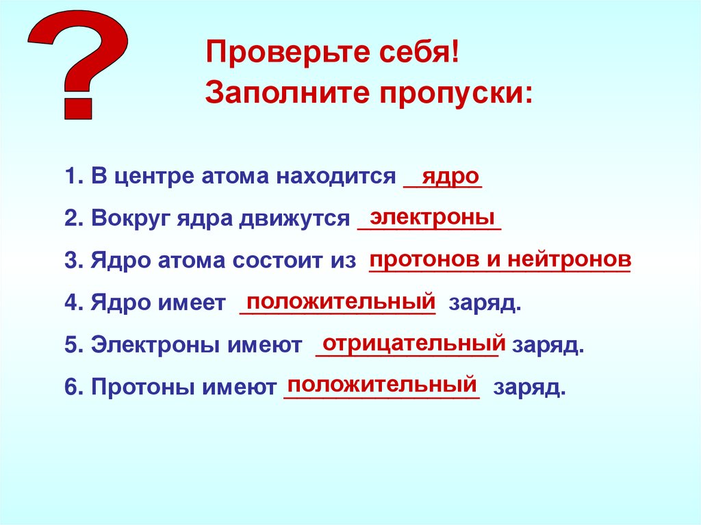 1.Чем отличаются друг от друга атомыразличных химических элементов?