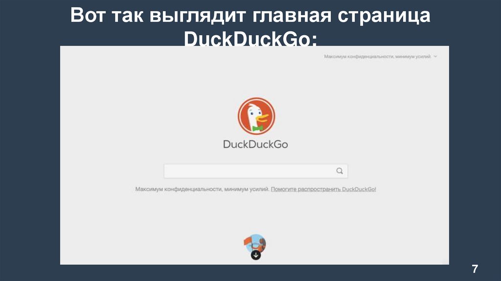 Вот как работает DuckDuckGo:Вы набираете что-то в поисковой строке.