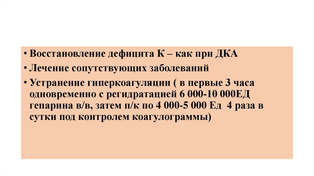 • Уменьшение образования лактата (ИКД по 2-5 ЕД/час в/в, 5%раствор глюкозы по 100-150 мл/час