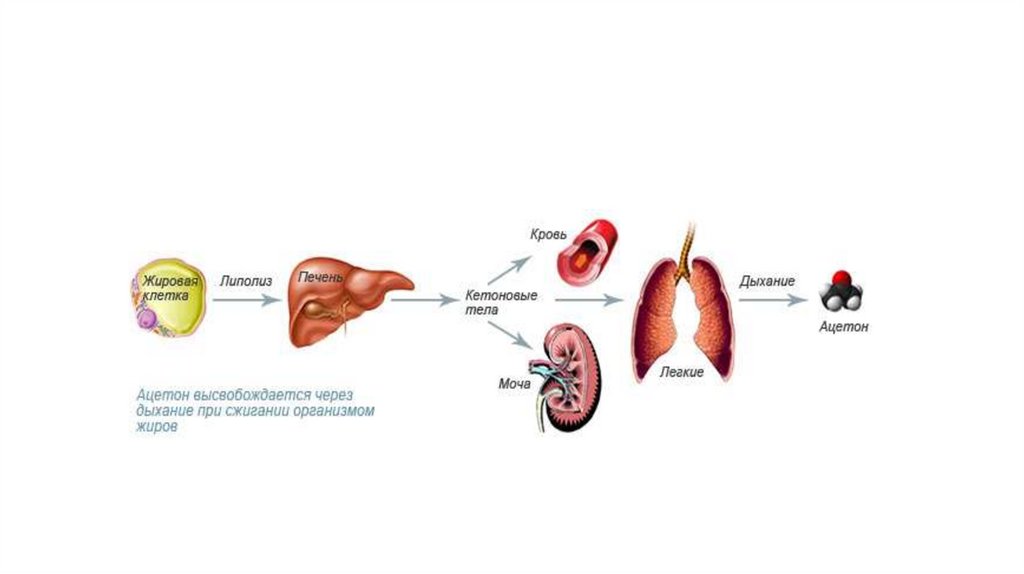 недостаточно количество углеводов, прием алкоголя, голодание)