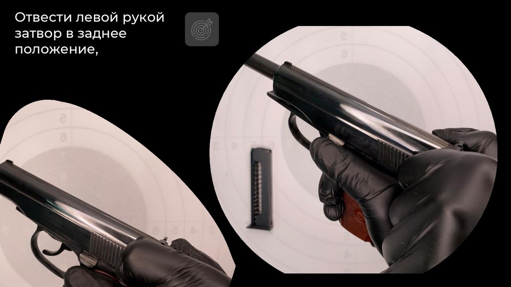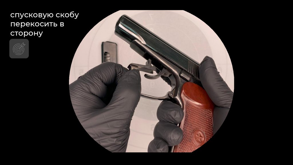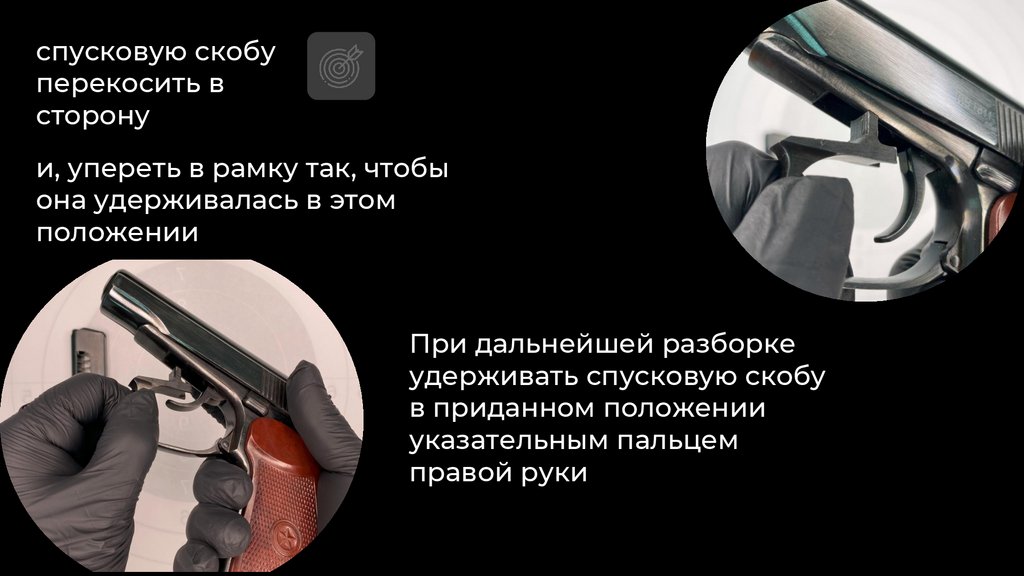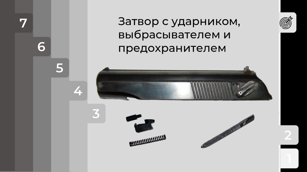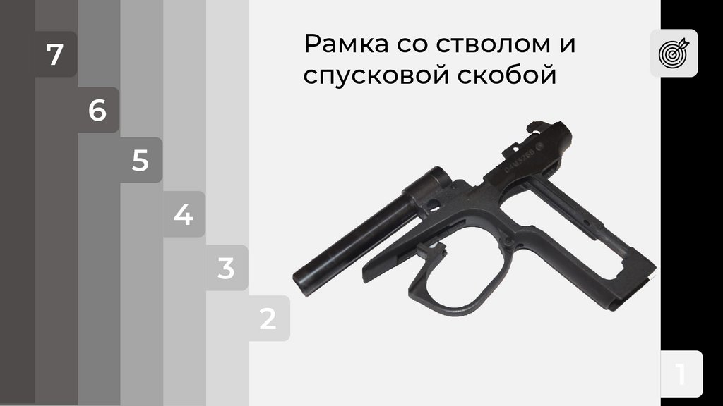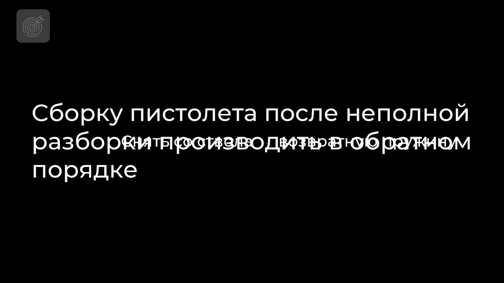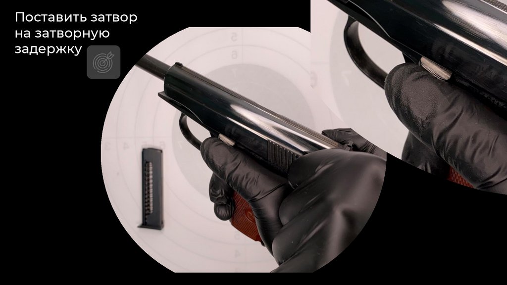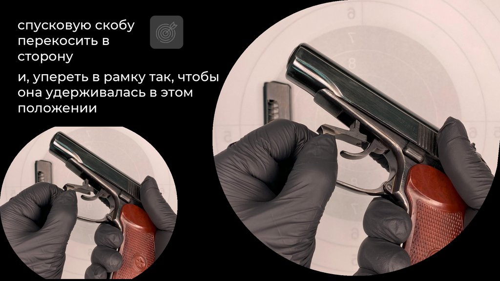 Надеть на ствол возвратную пружинуПрисоединить затвор к рамке