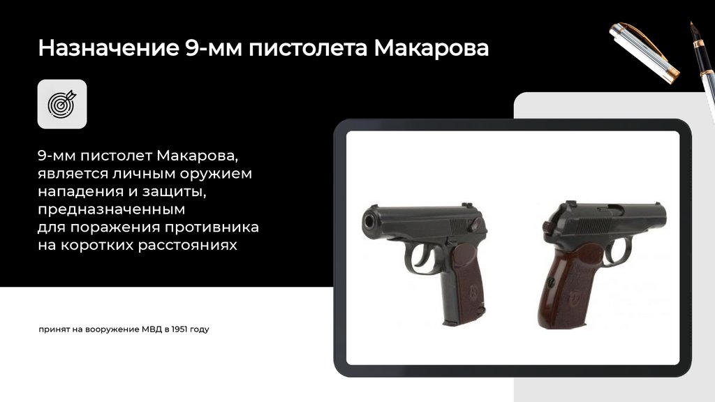 Назначение 9-мм пистолета Макарова9-мм пистолет Макарова,