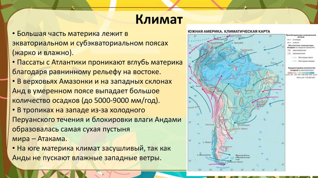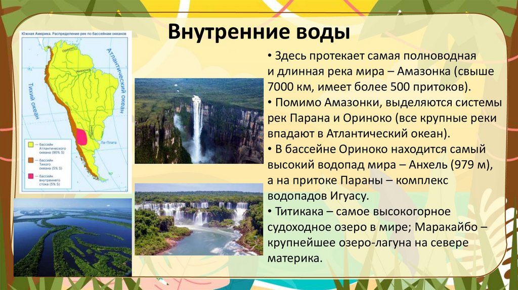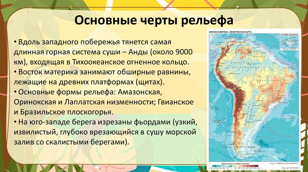 Южная Америка. Основные чертырельефа, климата и внутренних вод.