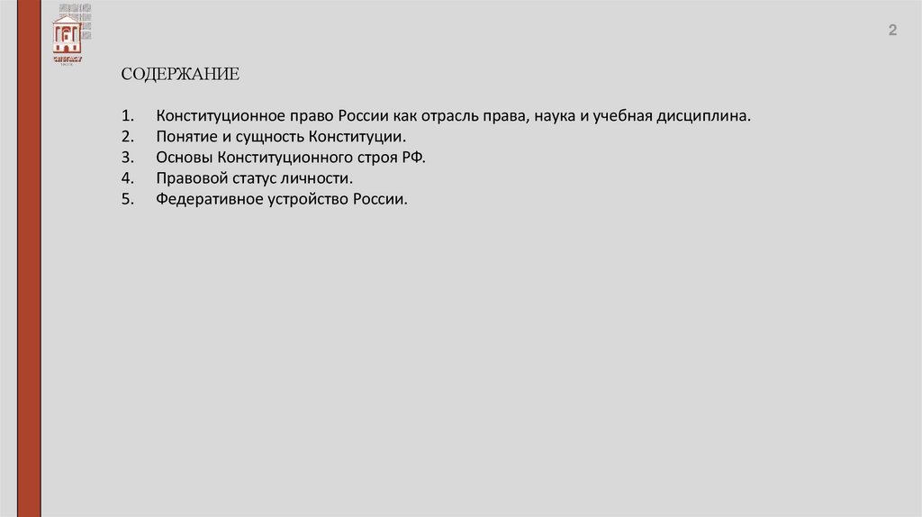 конституционного права как отрасли российского права изучаемых в системе высшего