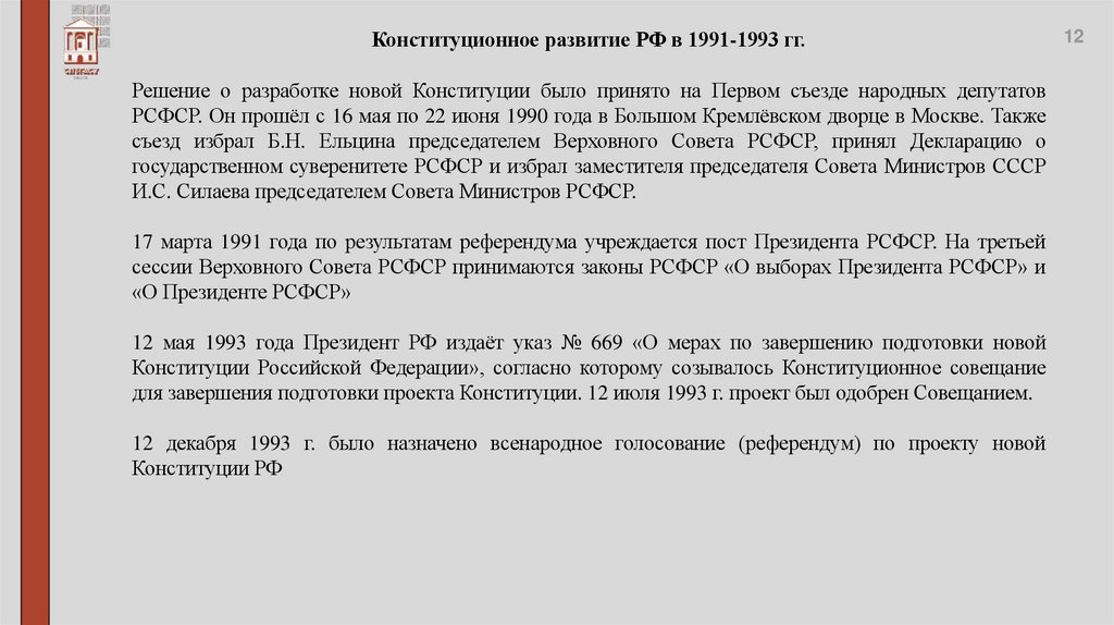 принята Конституция РФ.