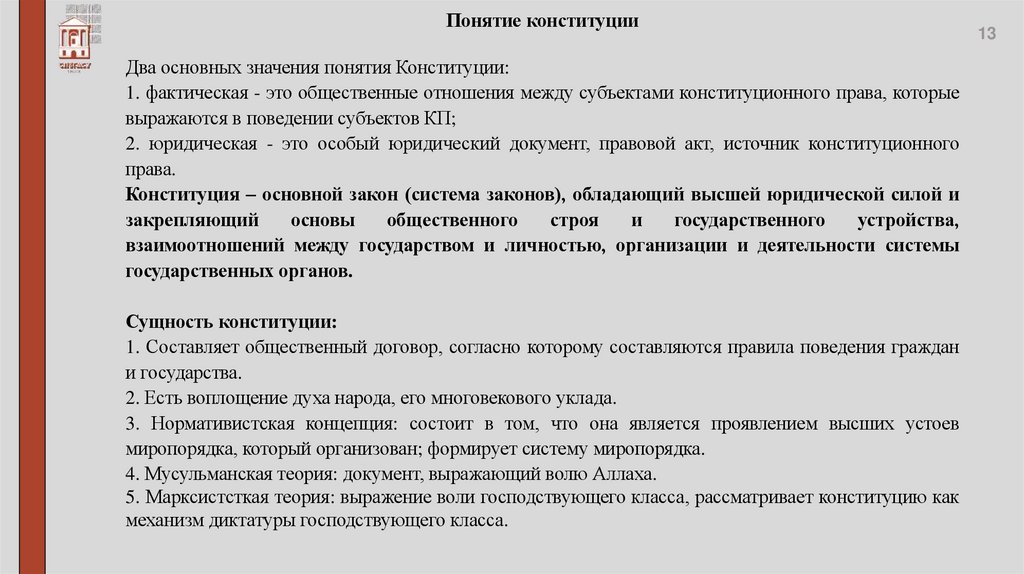 Понятие и сущность Конституции.