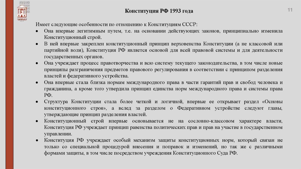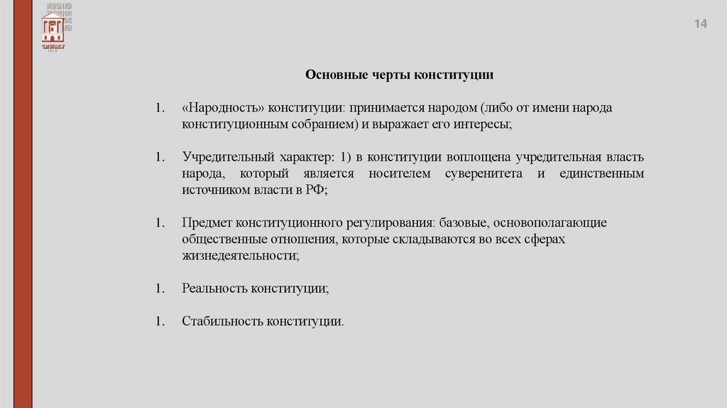 Конституционного права. Отличительные черты: содержание, учредительный