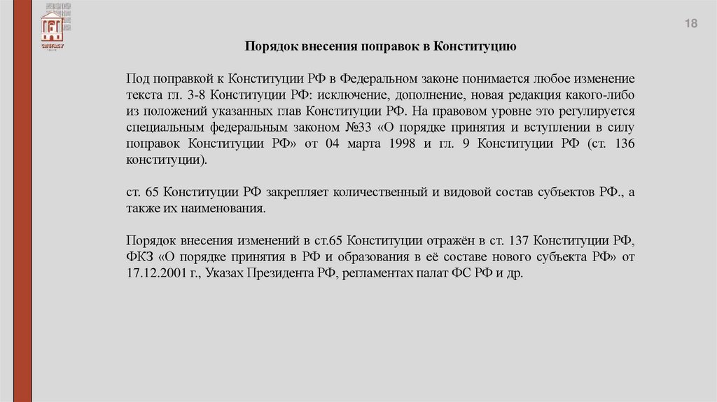 Конституционно-правовой статус субъектов РФ