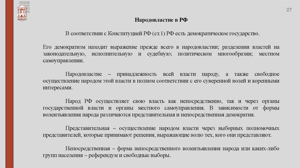 конституционного (общественного) строя Российского государства, сущность и формы власти