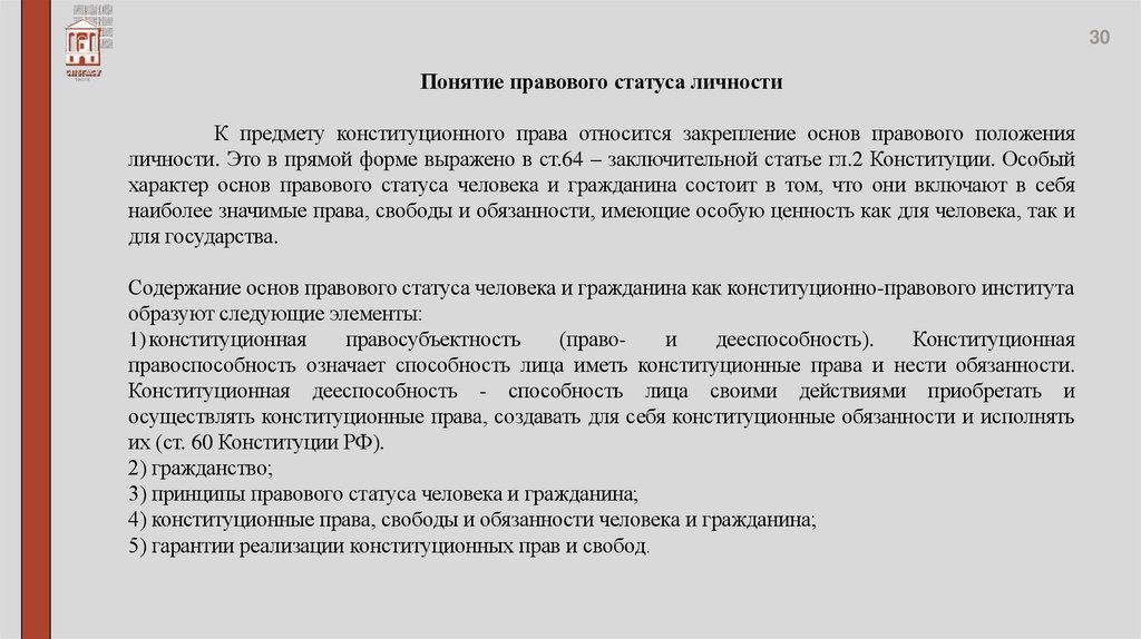 Правовой статус личности.