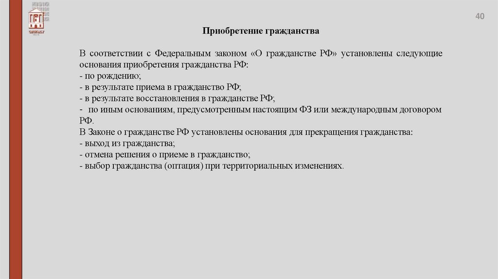 единое гражданство Российской Федерации.
