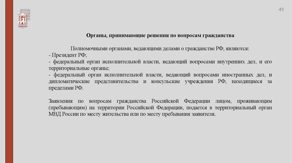 федеральных органов.