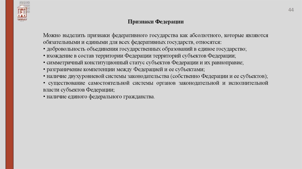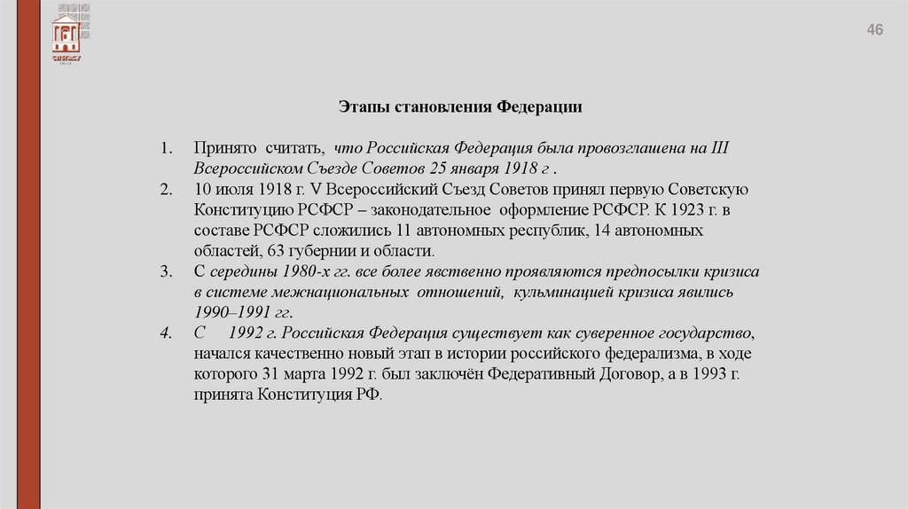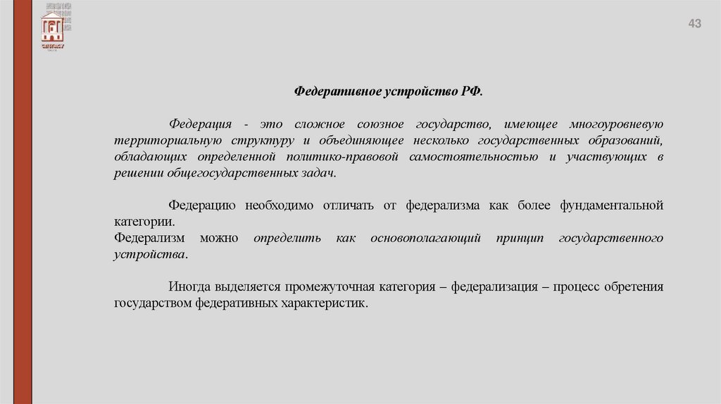47Российская Федерация — это федеративное государство, созданное по воле ее