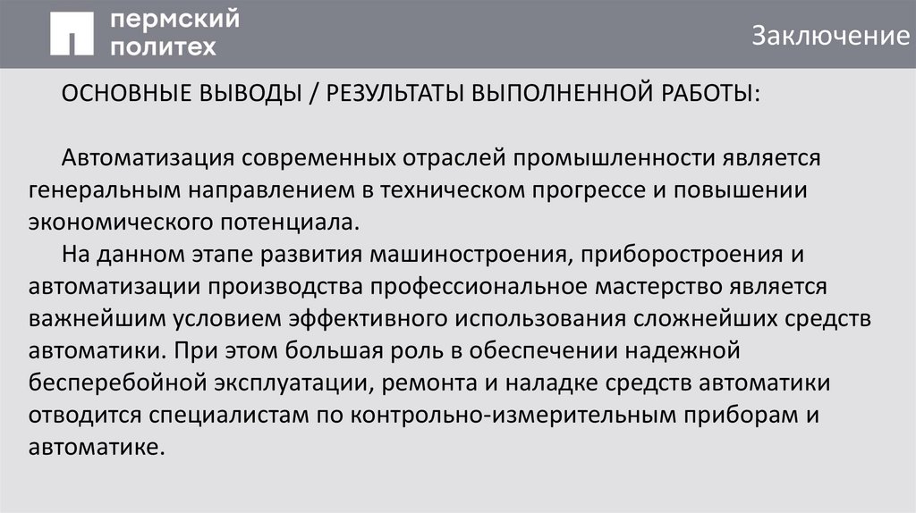 ОСНОВНЫЕ ВЫВОДЫ / РЕЗУЛЬТАТЫ ВЫПОЛНЕННОЙ РАБОТЫ: