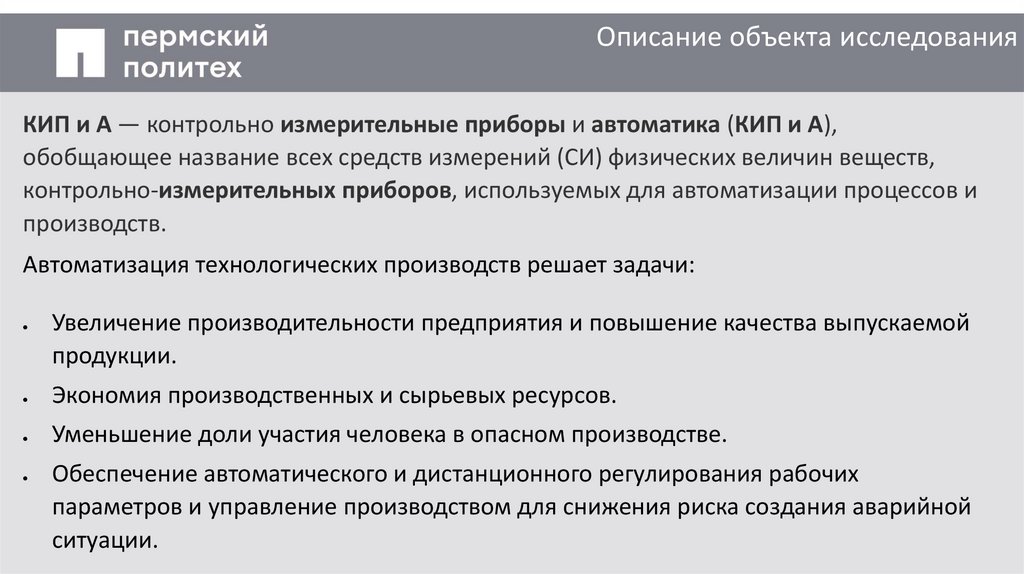 контрольно-измерительных приборов, используемых для автоматизации процессов и