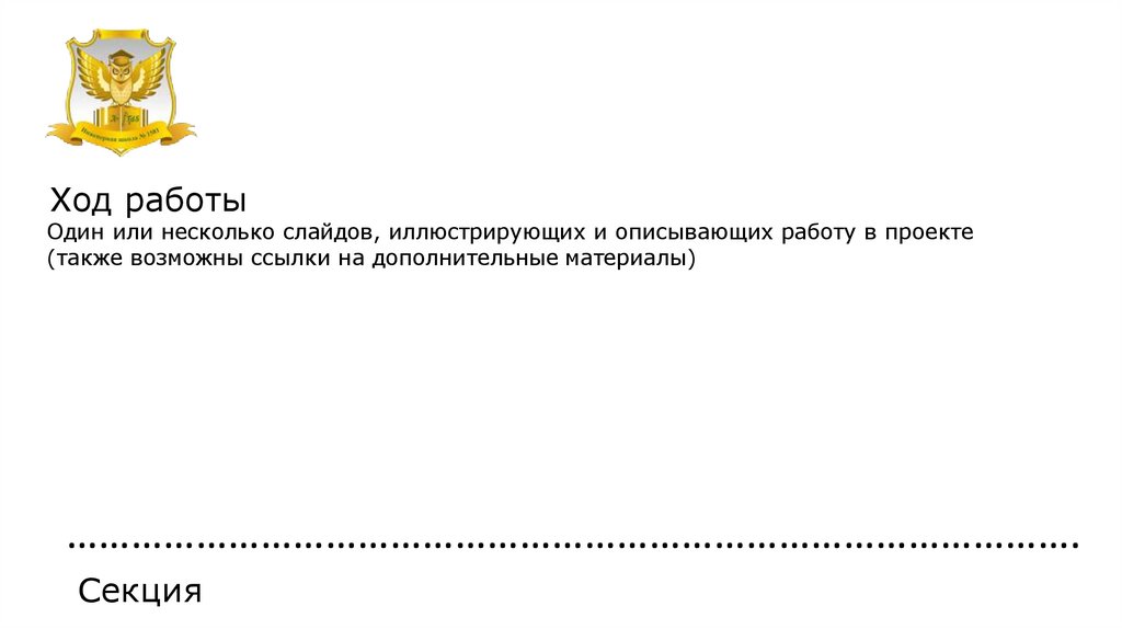 Ход работыОдин или несколько слайдов, иллюстрирующих и описывающих работу в проекте