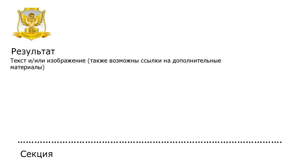 РезультатТекст и/или изображение (также возможны ссылки на дополнительные
