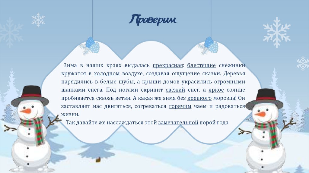 ПроверяемВ хвойном лесу зимой особенно красиво. На