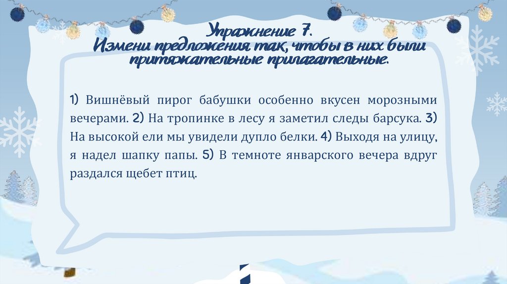 я надел шапку папы. 5) В темноте январского вечера вдруг