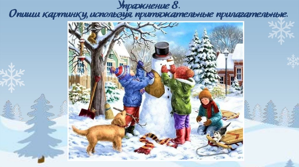 Упражнение 8.Опиши картинку, используя притяжательные прилагательные.