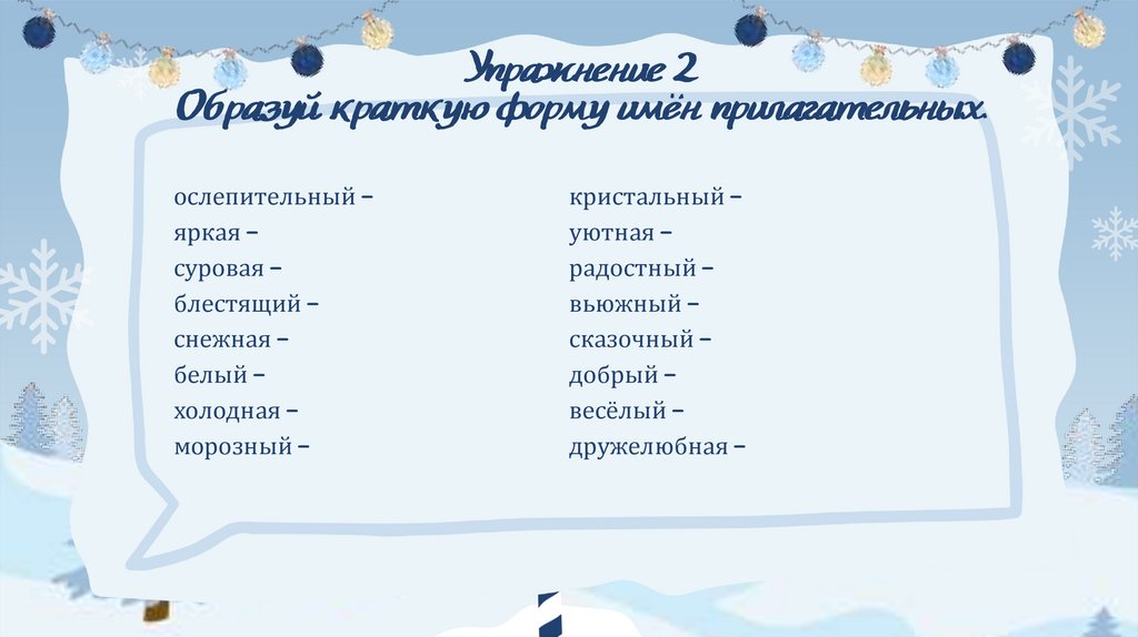 Упражнение 2Образуй краткую форму имён прилагательных.