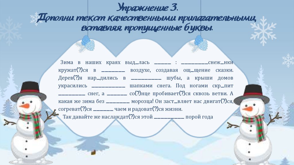 какая же зима без _______ морозца! Он заст_вляет нас двигат(?)ся,