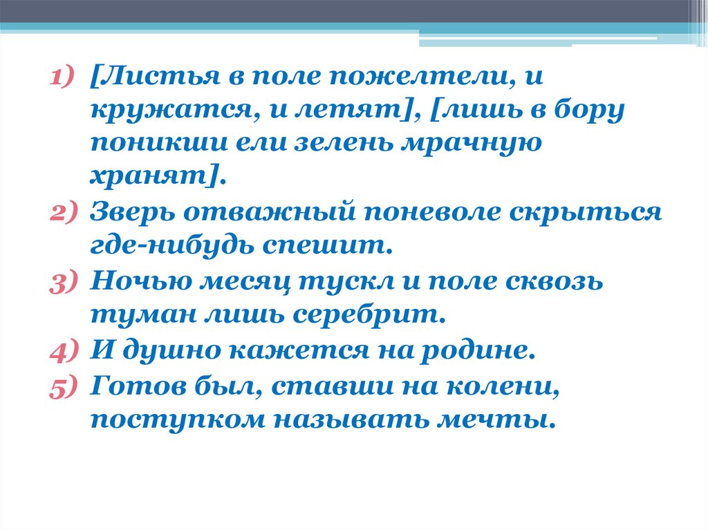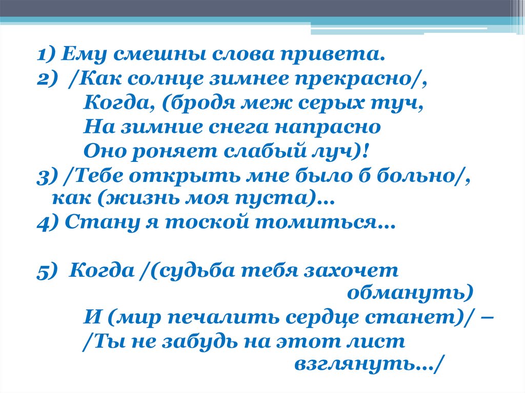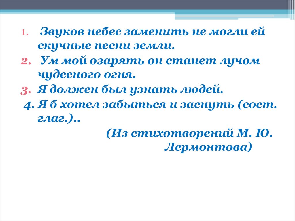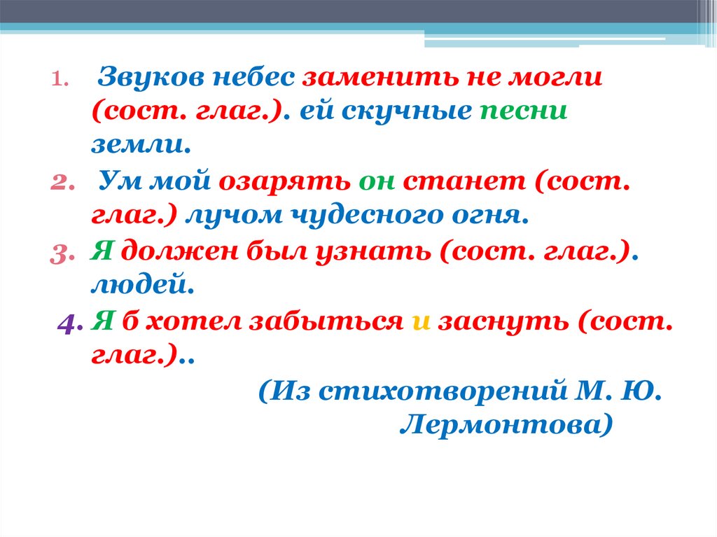 1. Звуков небес заменить не могли(сост. глаг.). ей скучные песни