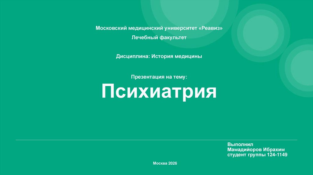 Московский медицинский университет «Реавиз»Лечебный факультет