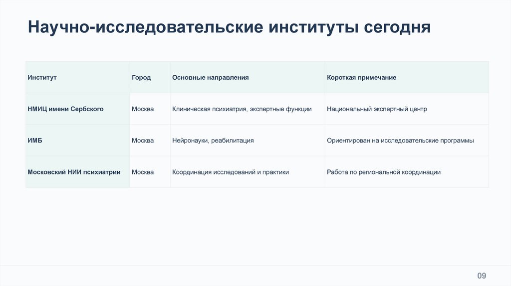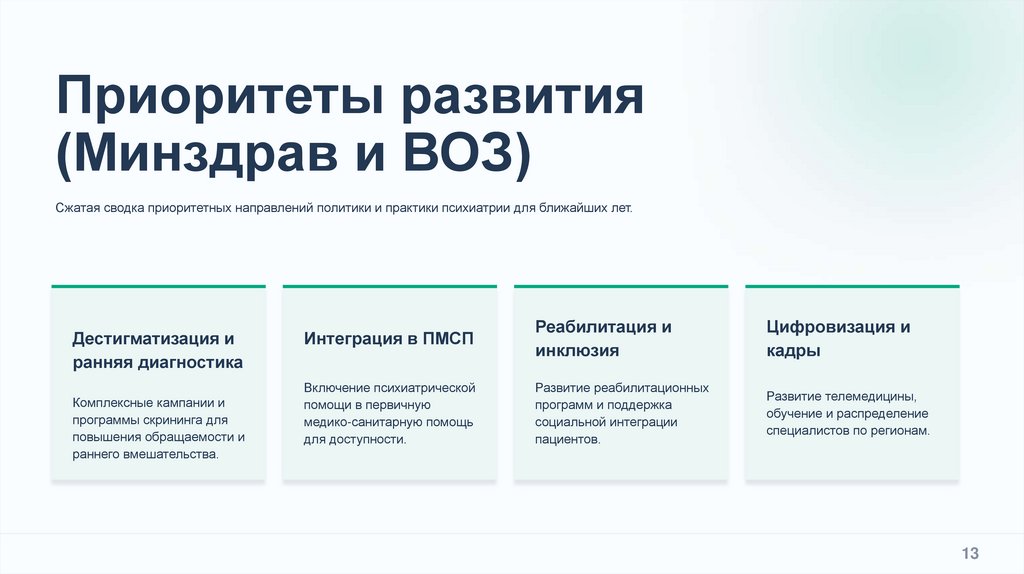 Сжатая сводка приоритетных направлений политики и практики психиатрии для ближайших лет.