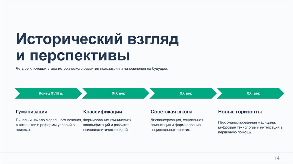 Четыре ключевых этапа исторического развития психиатрии и направления на будущее.