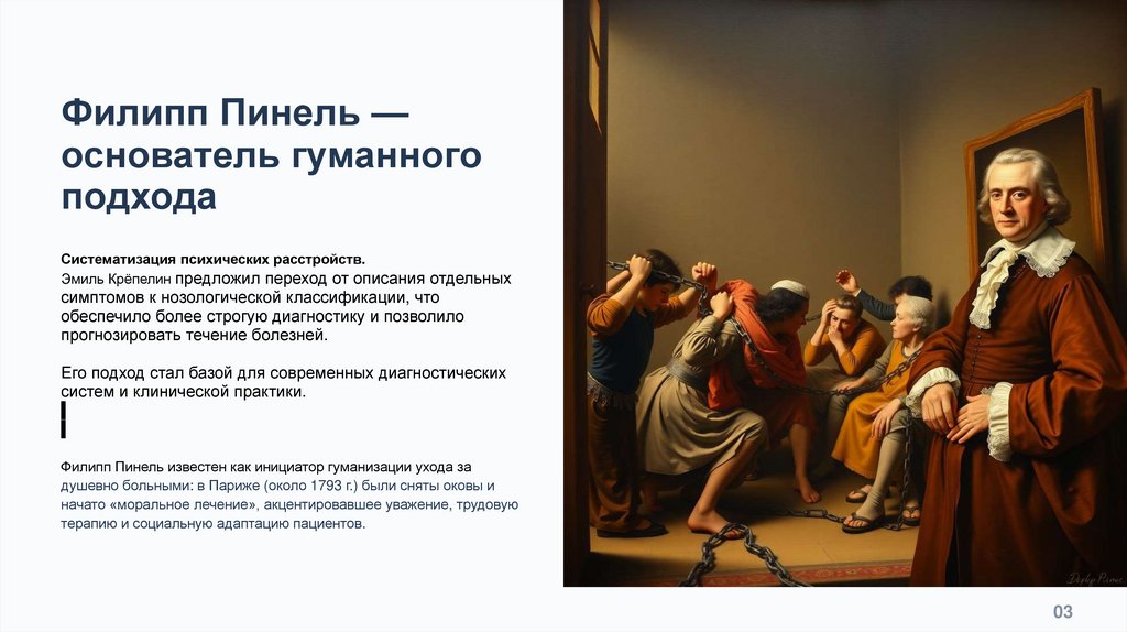 Филипп Пинель известен как инициатор гуманизации ухода за