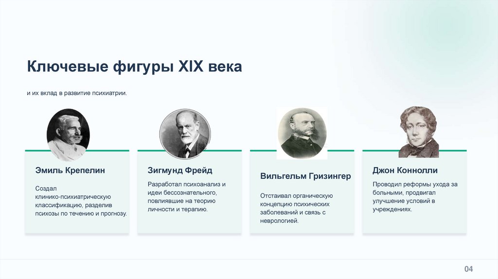 Ключевые фигуры XIX векаи их вклад в развитие психиатрии.