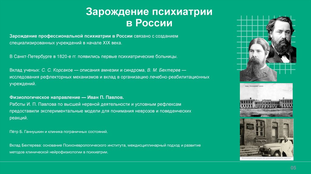 Вклад ученых: С. С. Корсаков — описания амнезии и синдрома, В. М. Бехтерев —