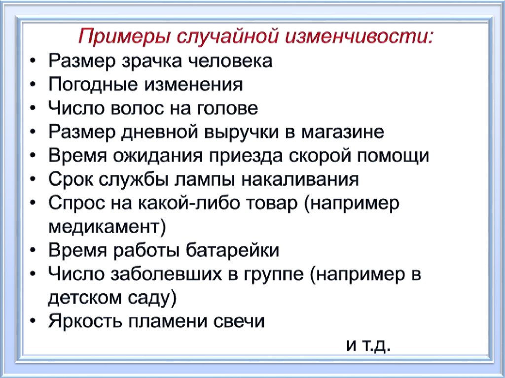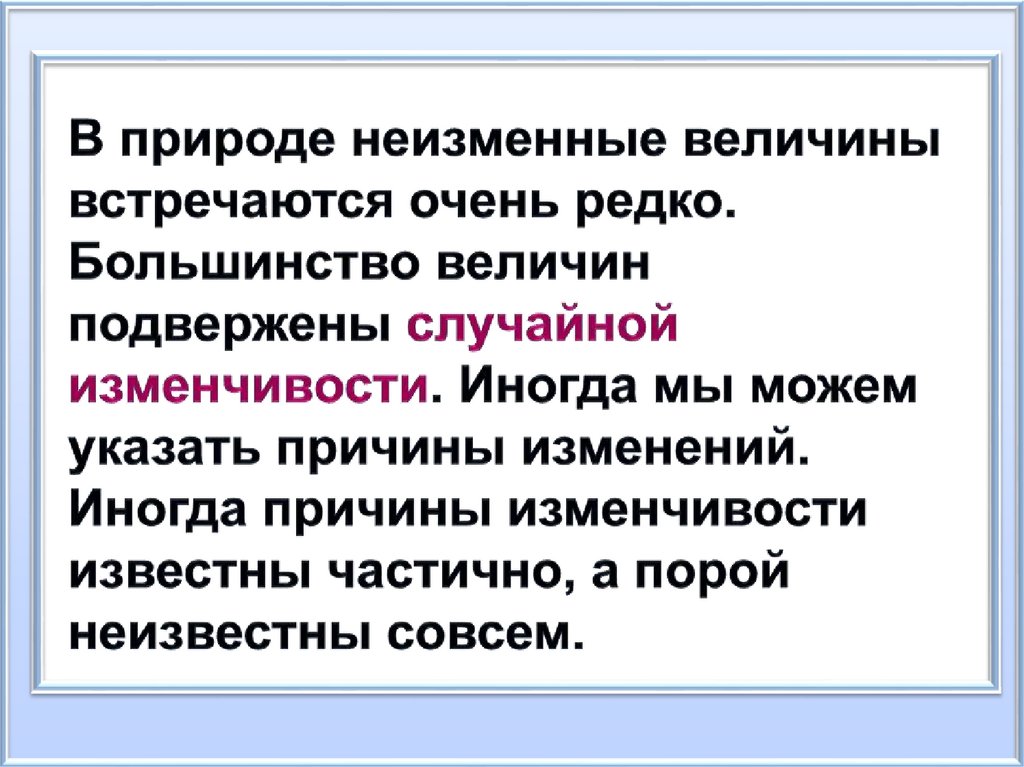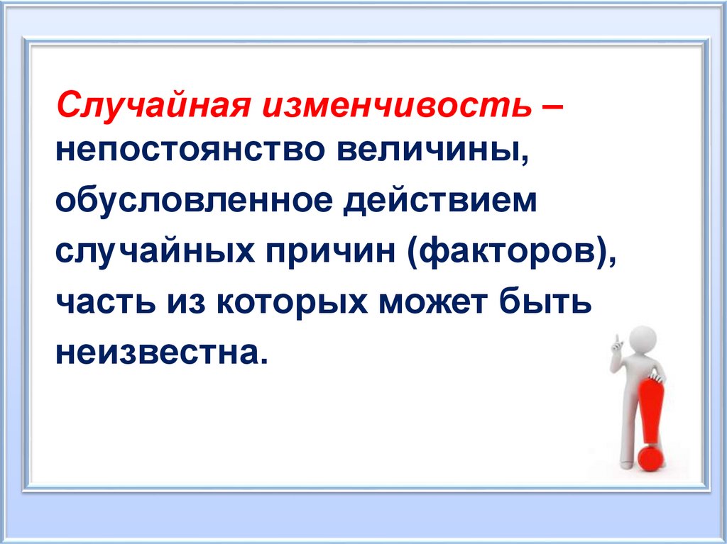Случайная изменчивость –непостоянство величины,