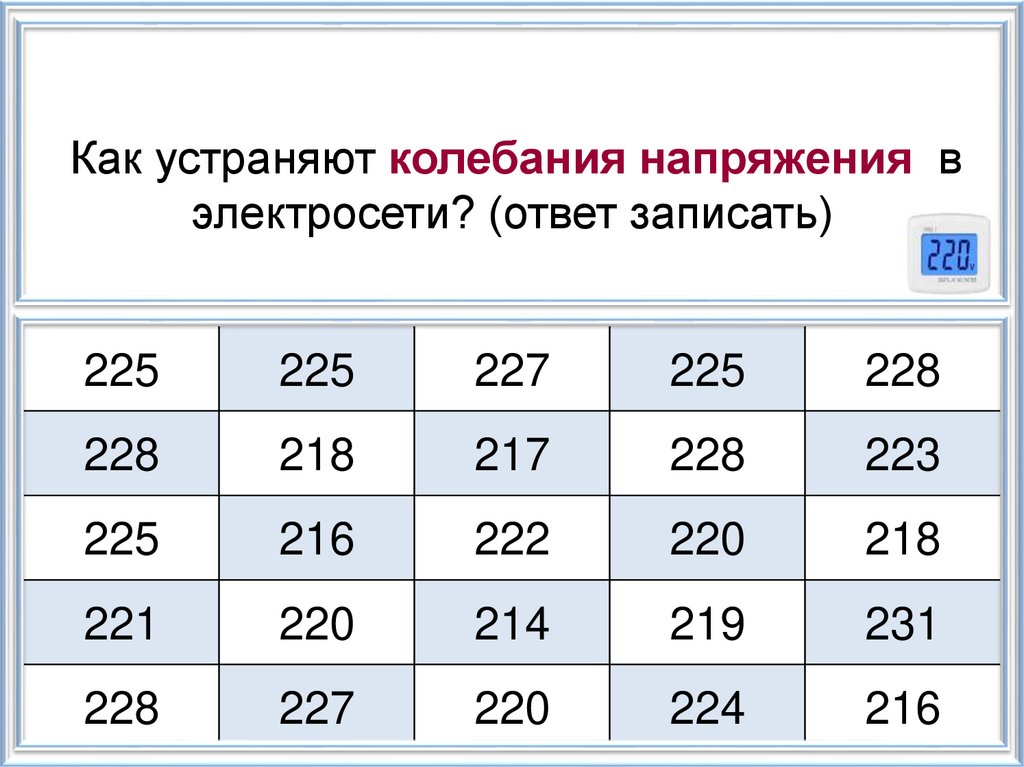 Как устраняют колебания напряжения вэлектросети? (ответ записать)