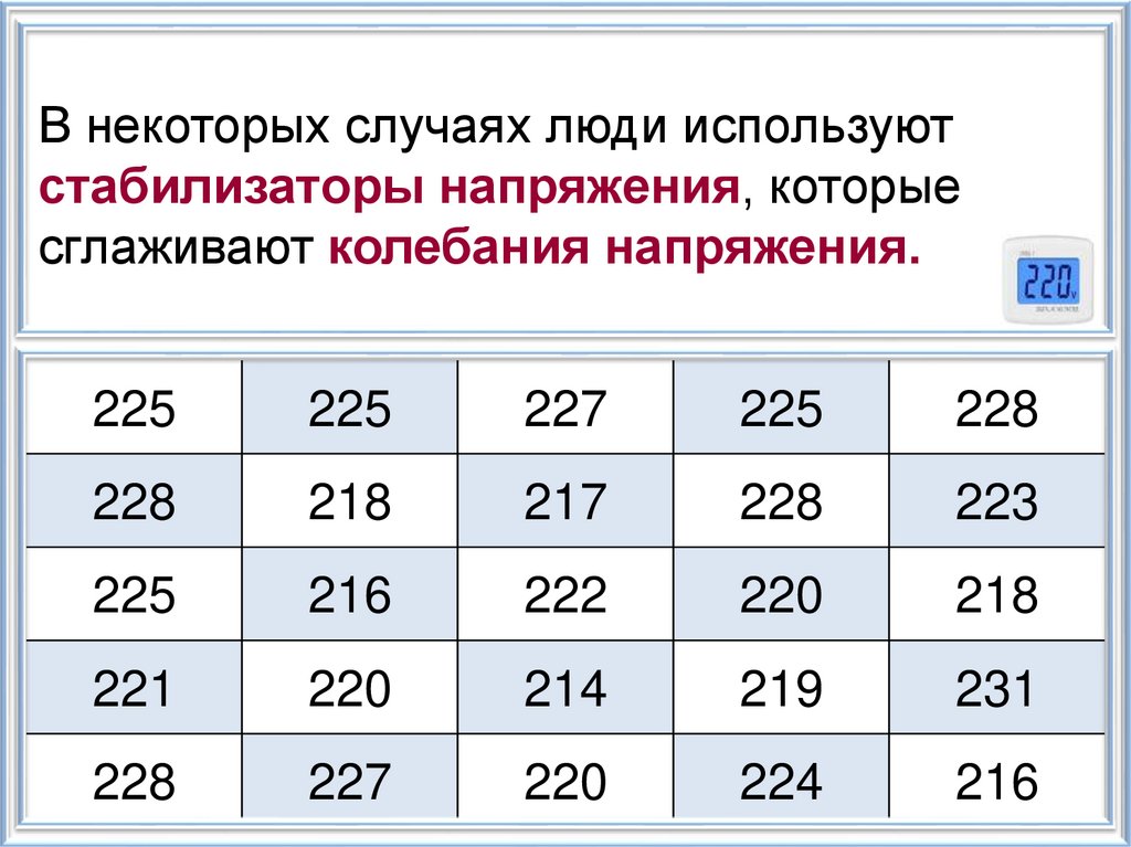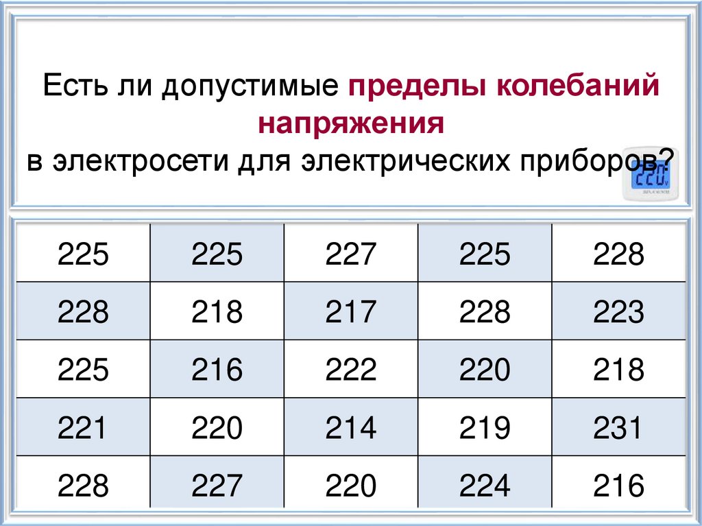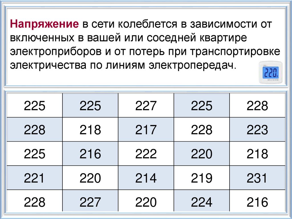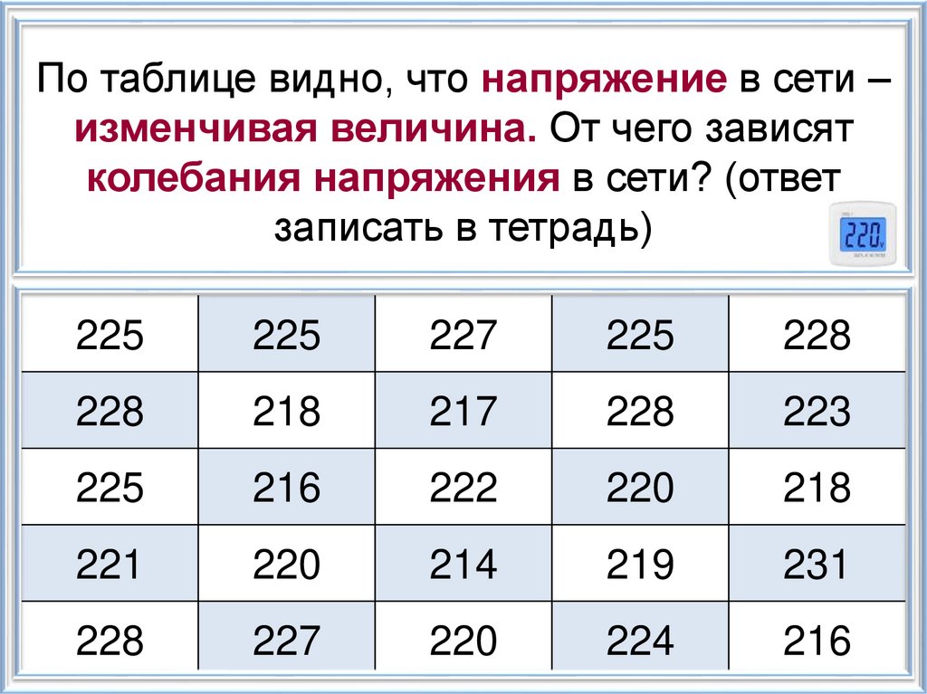 По таблице видно, что напряжение в сети –изменчивая величина. От чего зависят