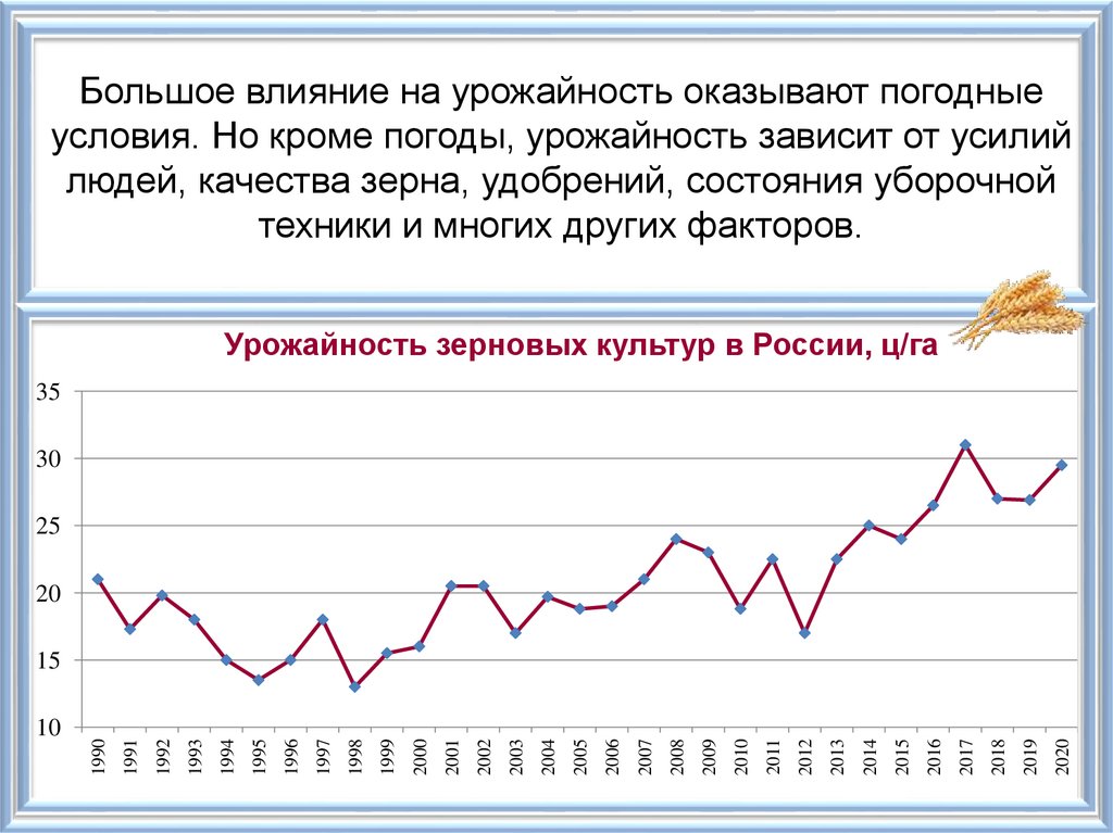 Большое влияние на урожайность оказывают погодныеусловия. Но кроме погоды, урожайность зависит от усилий
