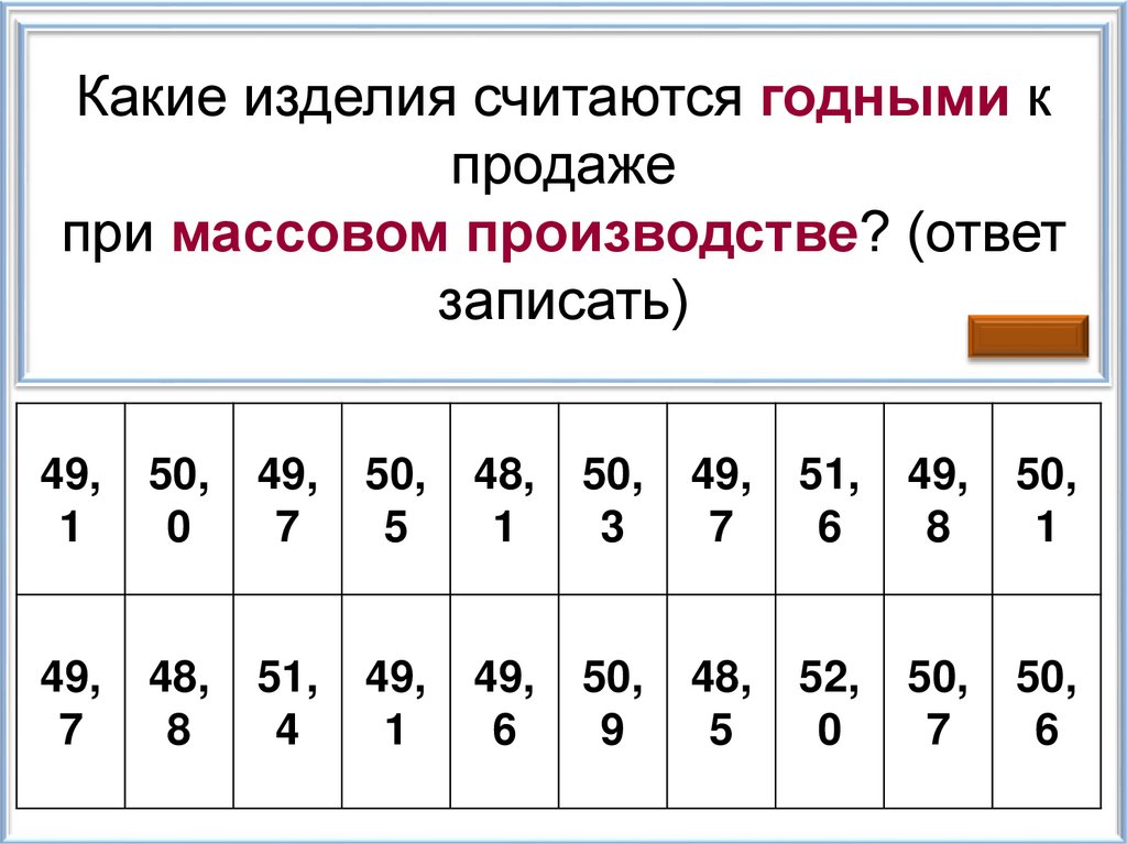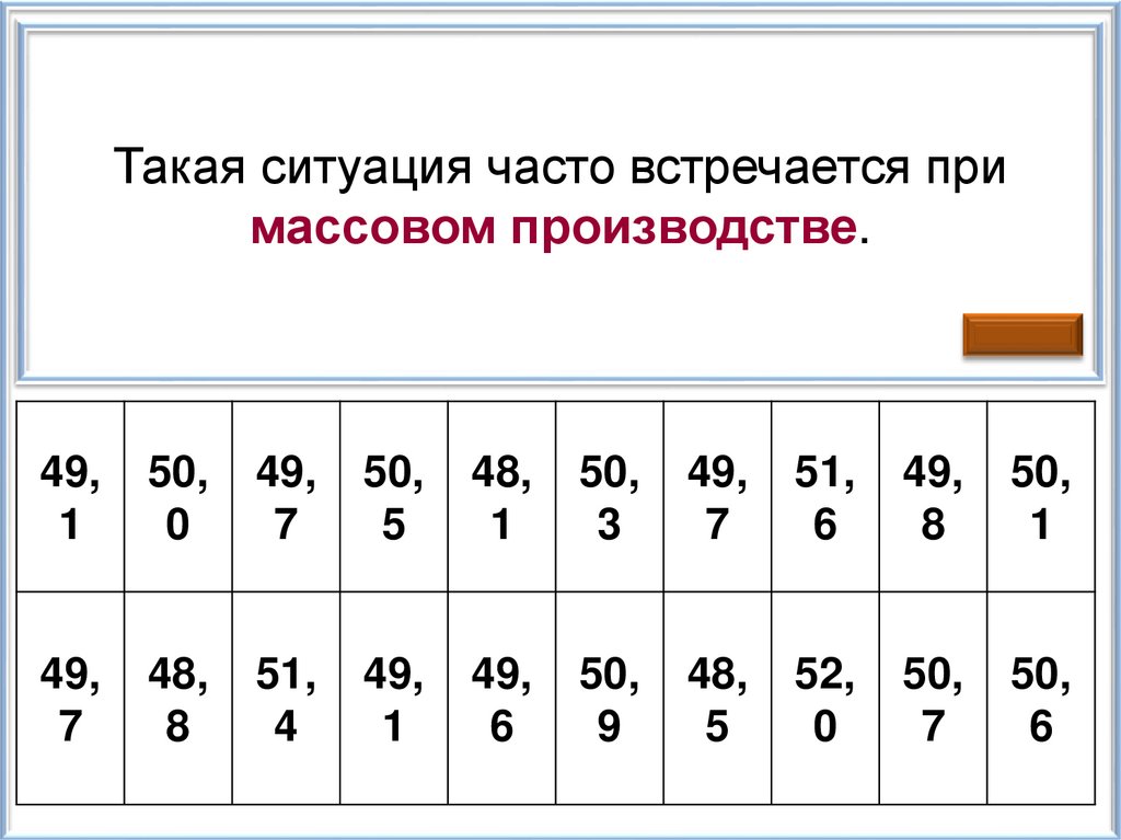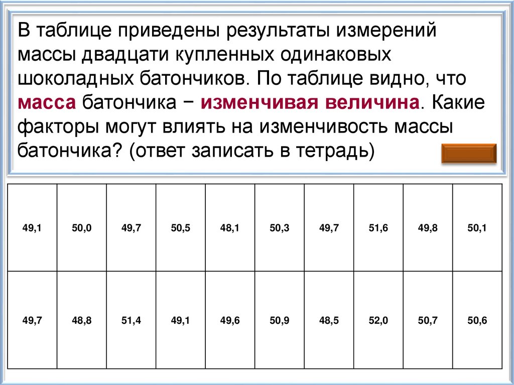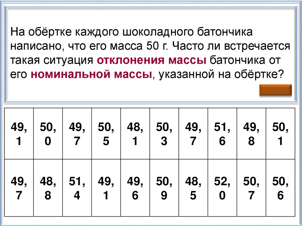 На обёртке каждого шоколадного батончиканаписано, что его масса 50 г. Часто ли встречается