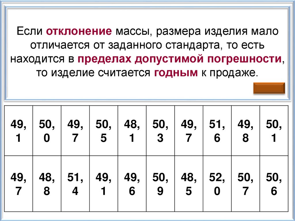 Если отклонение массы, размера изделия малоотличается от заданного стандарта, то есть
