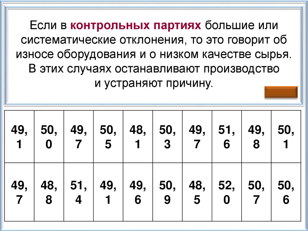 Если в контрольных партиях большие илисистематические отклонения, то это говорит об