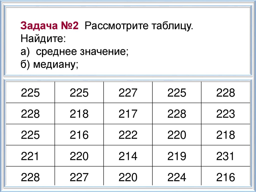 Задача №2 Рассмотрите таблицу.Найдите: