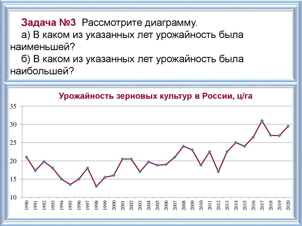 Задача №3 Рассмотрите диаграмму.а) В каком из указанных лет урожайность была