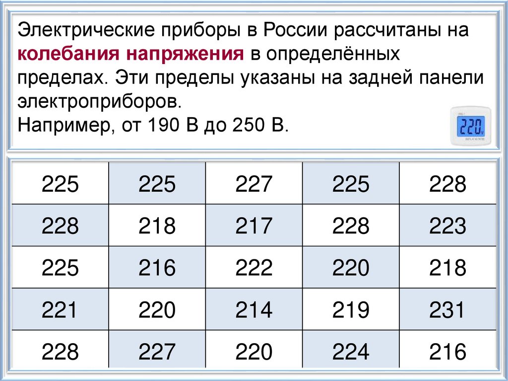 Электрические приборы в России рассчитаны наколебания напряжения в определённых
