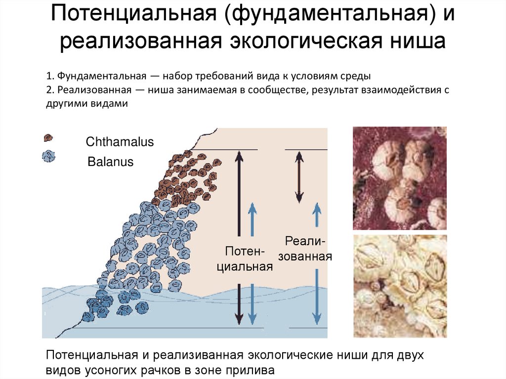 Потенциальная и реализиванная экологические ниши для двух