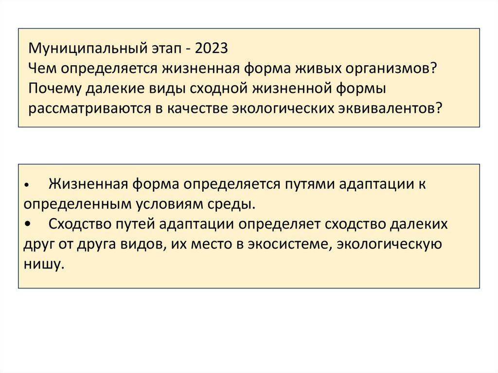 Муниципальный этап - 2023Чем определяется жизненная форма живых организмов?
