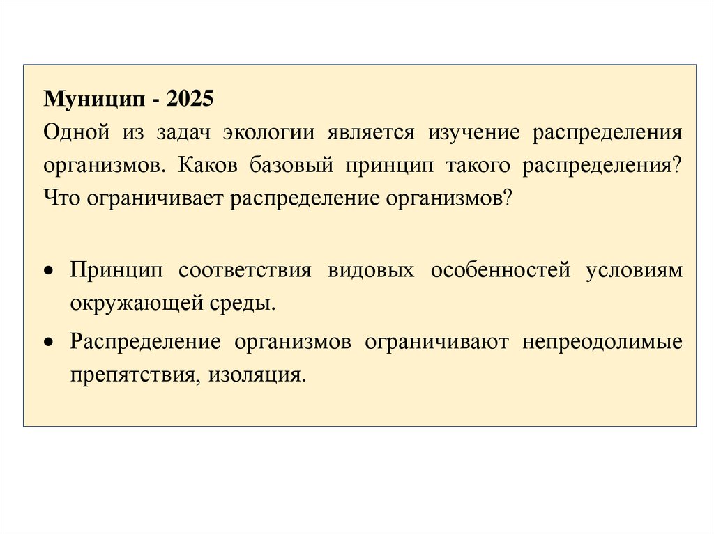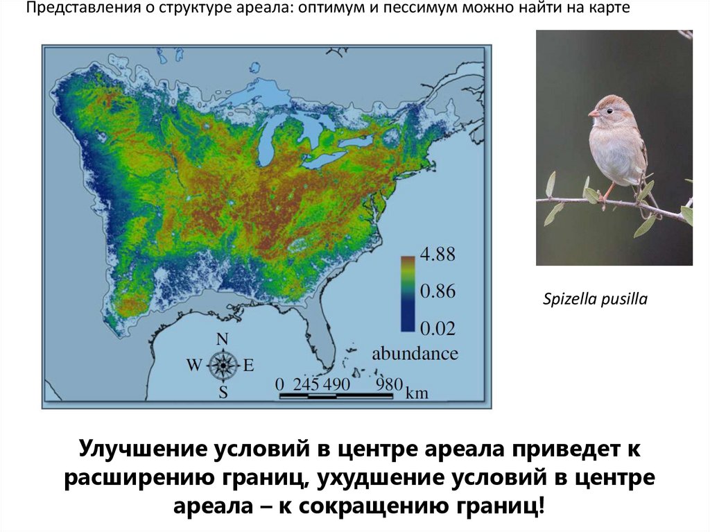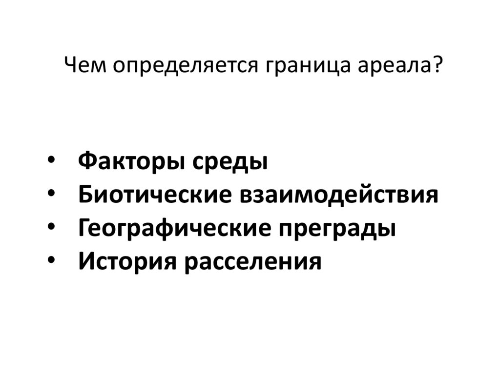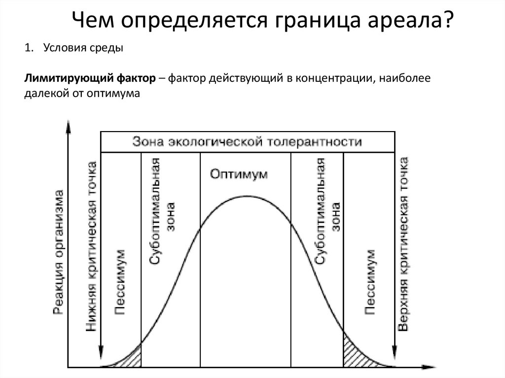 • Ареал – это оптимум вида• Граница ареала определяется условиями среды
