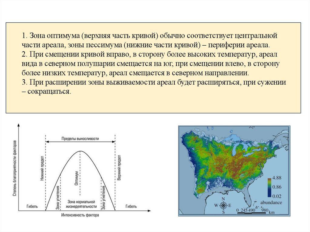 2. Оптимум определяет ареал вида и его место в экосистеме.