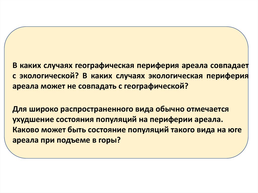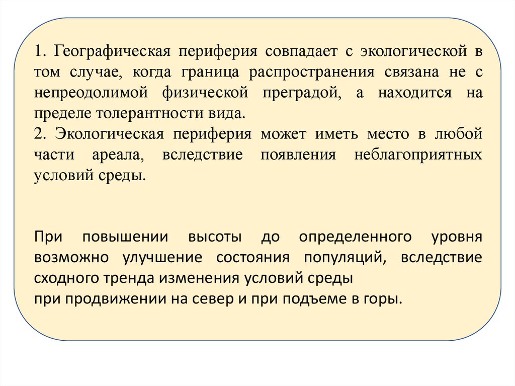 • Периферия (край) ареала соответствует пессимуму,